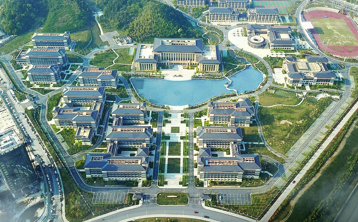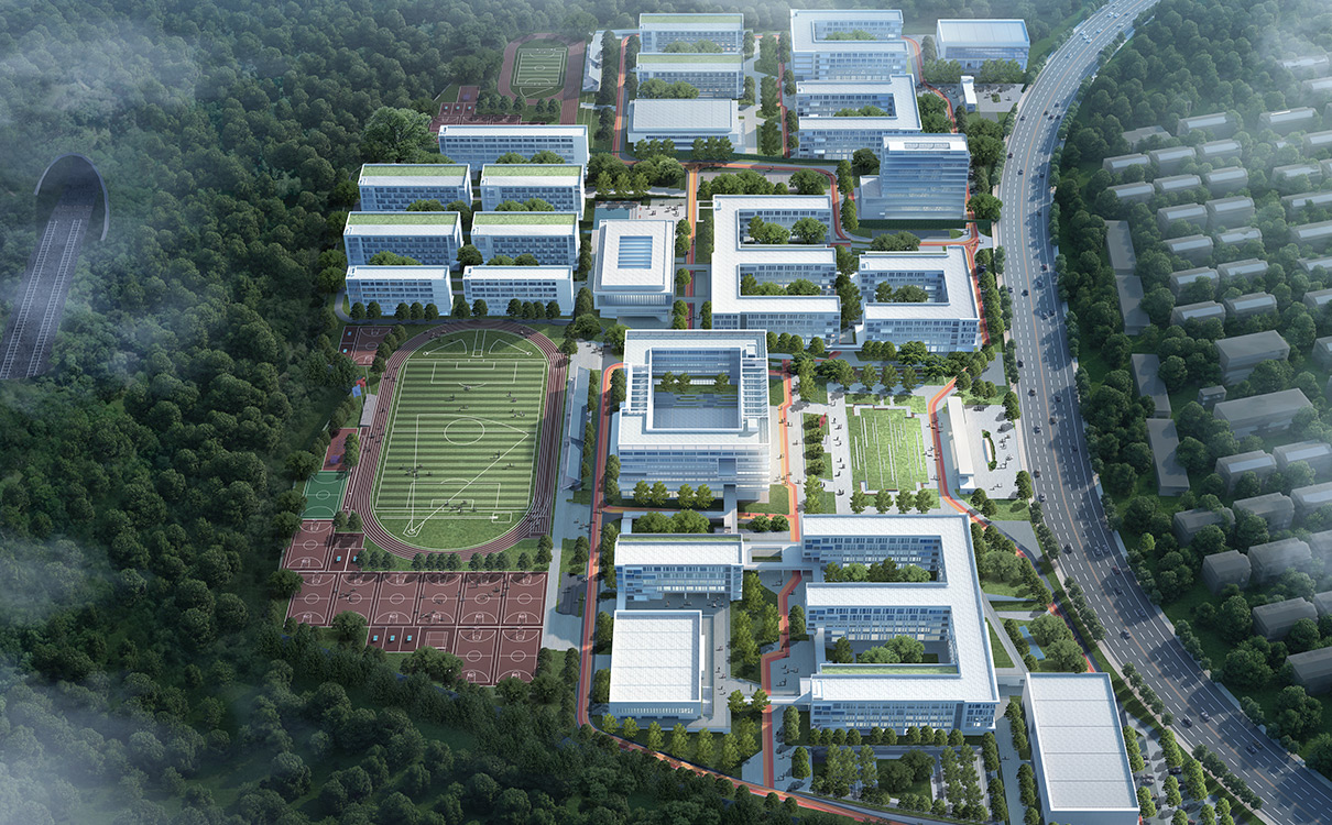設(shè)計(jì)理念:項(xiàng)目由教學(xué)區(qū)、生活區(qū)、體育活動(dòng)區(qū)三大功能區(qū)組成,建成后可容納6000名學(xué)生。兼顧地形和古橋遺址,用“三區(qū)、兩環(huán)、一軸線”的組織方式串聯(lián)整個(gè)建筑群。